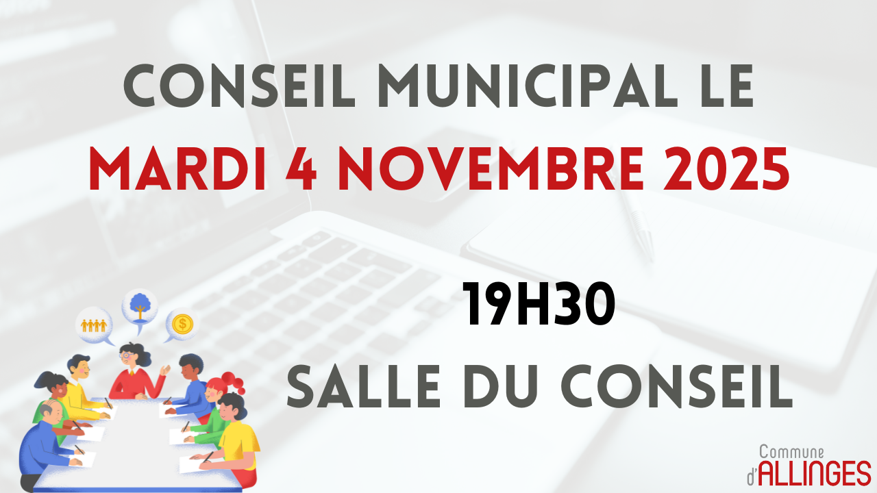 Le prochain Conseil Municipal se tiendra le mardi 4 novembre 2025, dès 19h30, en Salle du Conseil.